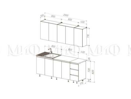 Высота верхних шкафов: 718 мм